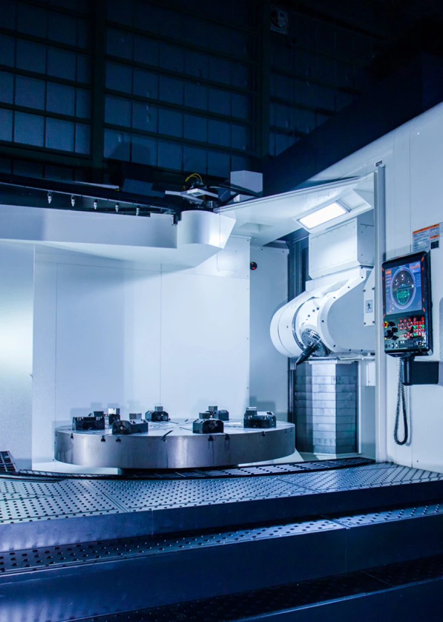 お客様のご要望に応えるべく、大型製品加工も中小型製品にも対応できる大小様々な機械を設備して、一括受注ができる体制を構築しております。 特に当社では、時代のニーズに応じた大型最新機械への設備投資を 継続的に実行しています。 ターニングに関してはテーブルサイズφ1000〜φ2800まで8台を 保有しており、保有台数は九州圏内でトップクラスです。 また、それに付随した大型の5軸加工機、五面加工機、大型のNC横中ぐり、大型の横型マシニングセンター等も設備しています。